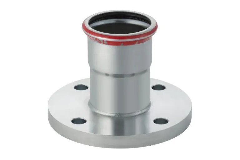 Geberit 1551968 on laippasiirtymä paineluokalla PN 10/16. Siirtymä liitetään puristusholkkiin ja laippaan, putken halkaisijalle 76,1 x 65 mm.