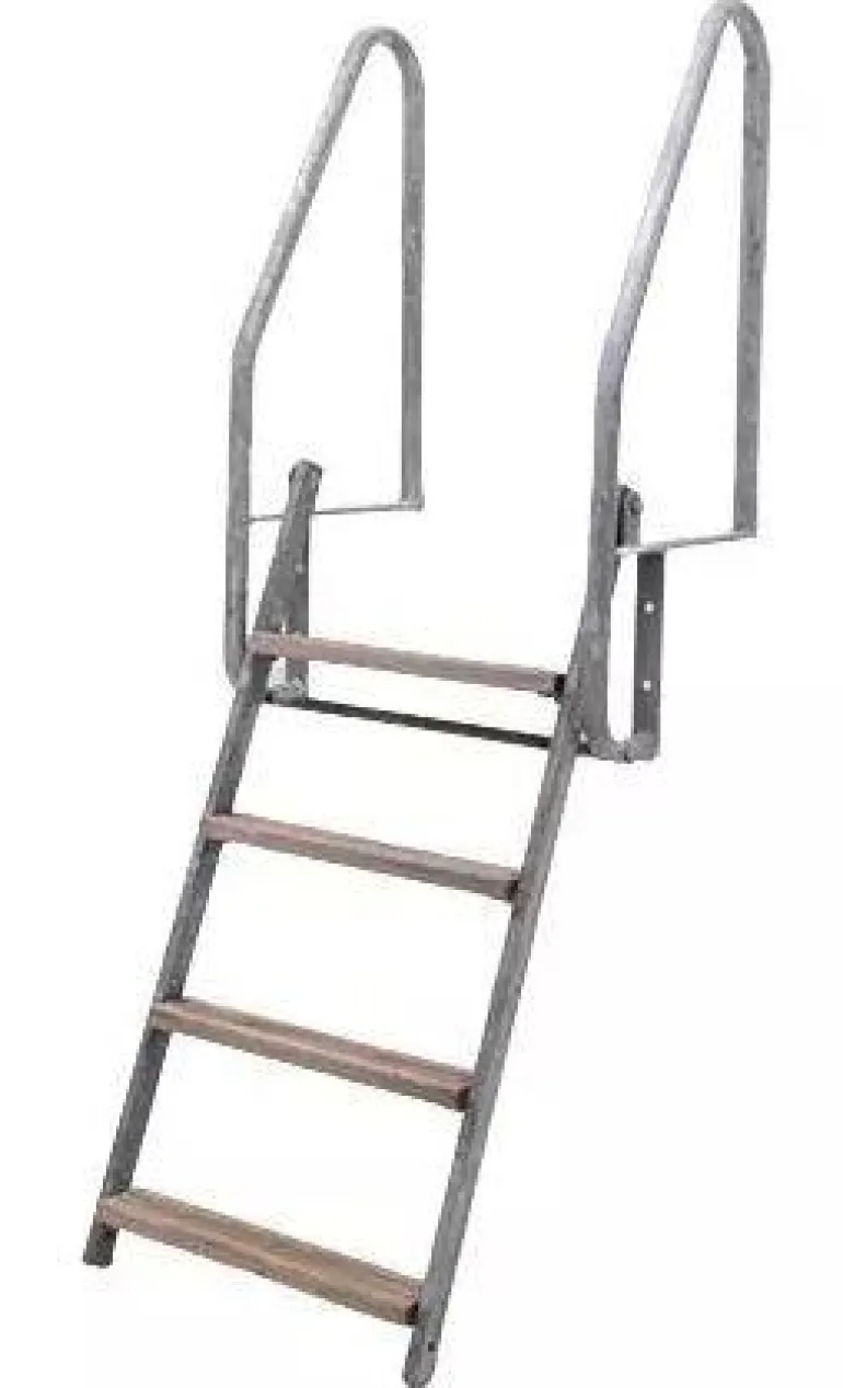 Laggo Vättern 640 ‑laituritikkaat. Kokoontaitettavuus helpottaa käsittelyä. Kuumasinkittyä terästä. Puisissa askelmissa on urat koko pituudelta ja ne on kyllästetty DIN 68 800-3 ‑standardin mukaisesti. Todella pitävät askelmat, joissa on kunnolliset urat. Helppo asentaa mukana toimitettavalla kuumasinkityllä pultilla.