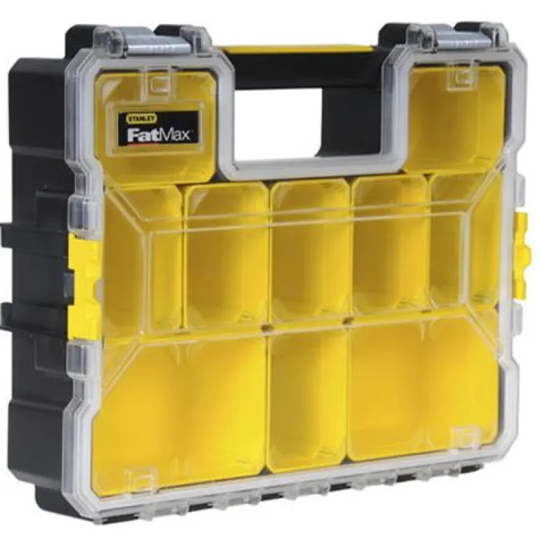 45 cm lajittelulaatikko erikoistukevalla kahvalla ja turvalukolla. Kiinteä leveä kahva mahdollistaa helpon ja vakaan kuljetuksen. Metallikiinnikkeet ja vahvat, kestävät turvalukot. Irrotettavat lokerot pienten osien ja tarvikkeiden säilyttämiseen. Water Seal. Leveät sivukiinnittimet mahdollistavat tukevan pinonnan. Mitat: 44,6 x 11,6 x 35,7 cm.