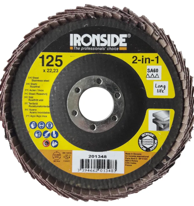 Taivutettu lamellilaikka, jossa hiomakangas taitetaan ylöspäin 90° kulmassa perusreunaa pitkin. Laikan reunan muoto mahdollistaa työkalun optimaalisen säädön työkappaleen geometrian mukaan, jolloin saavutetaan paremmat hiontatulokset vaikeapääsyisissä kohteissa. Keraamiset hiomajyvät mahdollistavat aggressiivinen ja laadukkaan hionnan myös alhaisella paineella, ja parantavat mittavakautta ja pidentävät työkalun käyttöikää. Lamellilaikan kulmittain olevat levyt saumahitsien optimaaliseen hiontaan ja ne voidaan sovittaa hitsausgeometrian mukaan. Tarkkuusmuotoiltujen hiomajyvien jatkuva itseteroitus takaa korkean materiaalinpoiston koko hiontaprosessin ajan.