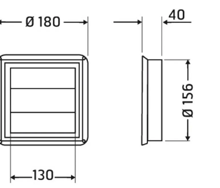 Lamelliventtiili, jonka mitat ovat 180 x 180 mm. Liesituulettimiin, seinäpuhaltimiin, kuivauskaappeihin ja vastaaviin. Lamellit avautuvat ja sulkeutuvat automaattisesti.