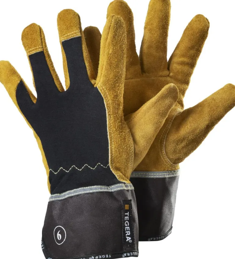 Lämpö- ja viiltosuoja raskaisiin töihin. Kestävä naudan haljasnahka kämmenessä ja hengittävä puuvilla kämmenselässä. KEVLAR®-vuori käsineen sisällä parantaa lämpö- ja viiltosuojaa.