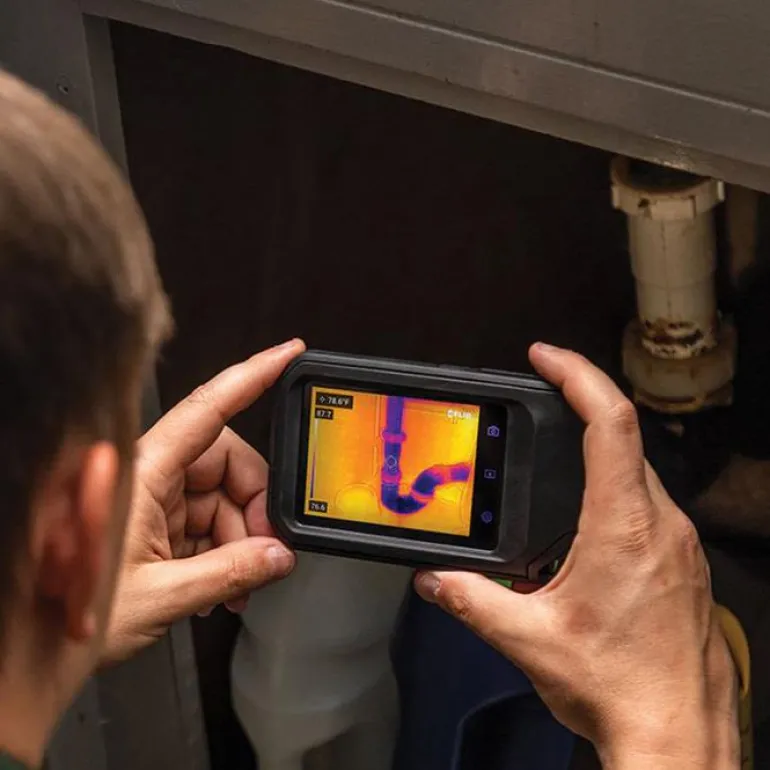 Flir C3-X Compact lämpökamera 128 x 96 IR-resoluutio, MSX ja 5 megapikselin kamera. Lämpökamera tunnistaa piilotetut ongelmat ja Wi-Fi-yhteyden avulla voit helposti jakaa tulokset asiakkaiden ja kollegoiden kanssa. Kuvat voidaan ladata ja tallentaa Ignite-pilveen, johon pääsee matkapuhelimella tai tietokoneella. C3-X Compact lämpökameran mittausalue on -20:n – 300 ° C:n väliltä ja siinä on sekä Wi-Fi- että bluetooth-toiminto. Akun kesto on jopa 4 tuntia.