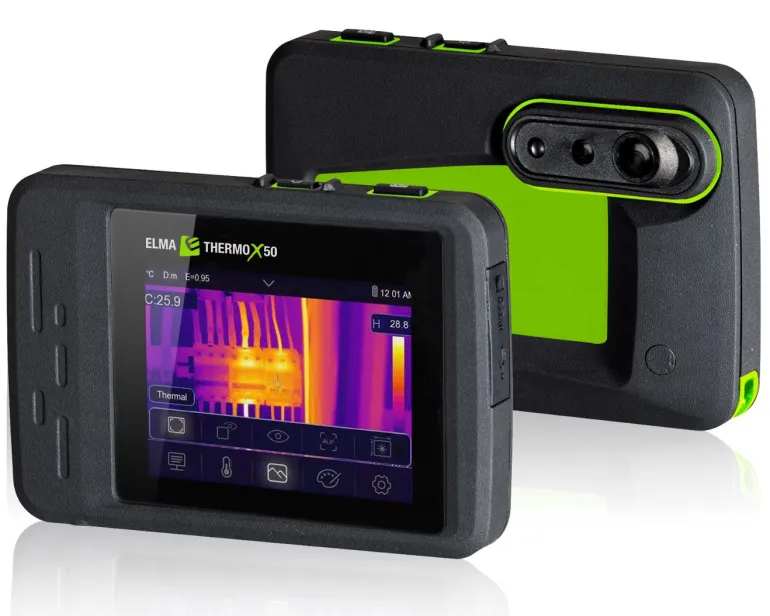Käyttäjäystävällinen analyysi- ja raportointiohjelmisto on ladattavissa ilmaiseksi Elman verkkosivuilta. Thermo X50 tekee lämpötilaan liittyvien tietojen dokumentoinnista helppoa ja ammattimaista – ilman suurta investointia tai tarvittavaa laajempaa kokemusta lämpökuvauksesta. Sisäänrakennettu ladattava litiumioniakku ladataan USB-C:n kautta – laturi on hankittava erikseen tai voit käyttää tietokonetta tai tavallista älypuhelimen laturia USB-C-kaapelilla.