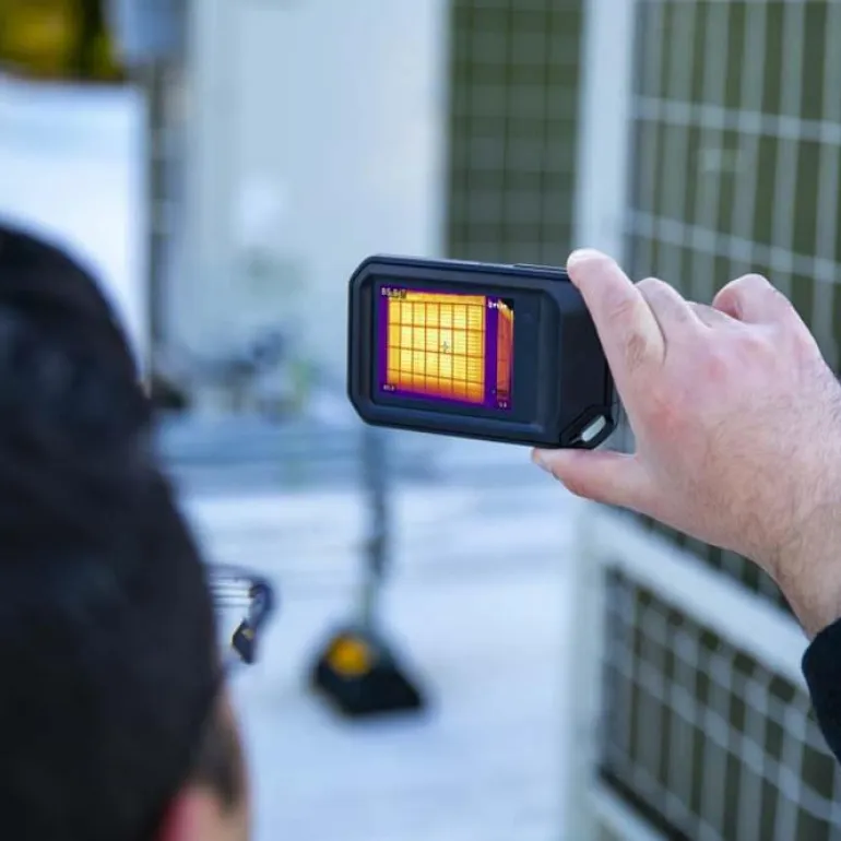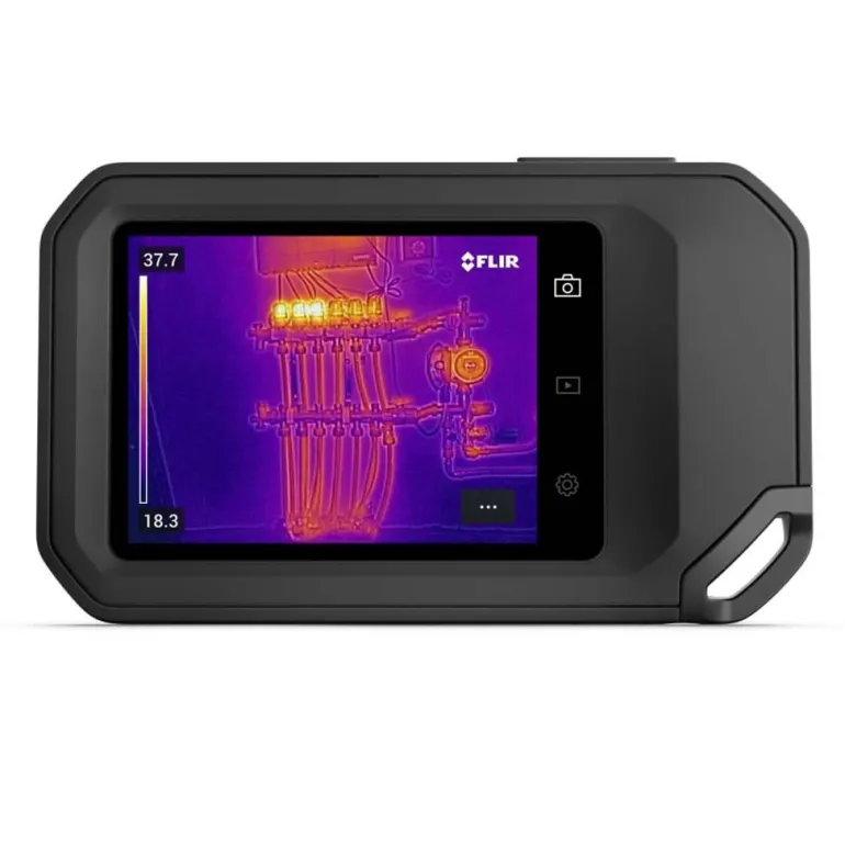 Lämpökamera on suunniteltu kestämään jopa 2 metrin putoamisen, ja IP54-kotelo tarjoaa korkean suojauksen pölyltä ja vedeltä. Kamera on myös varustettu LED-taskulampulla, jonka avulla voit saada paremman kuvan pimeistä ja esteettömistä alueista.