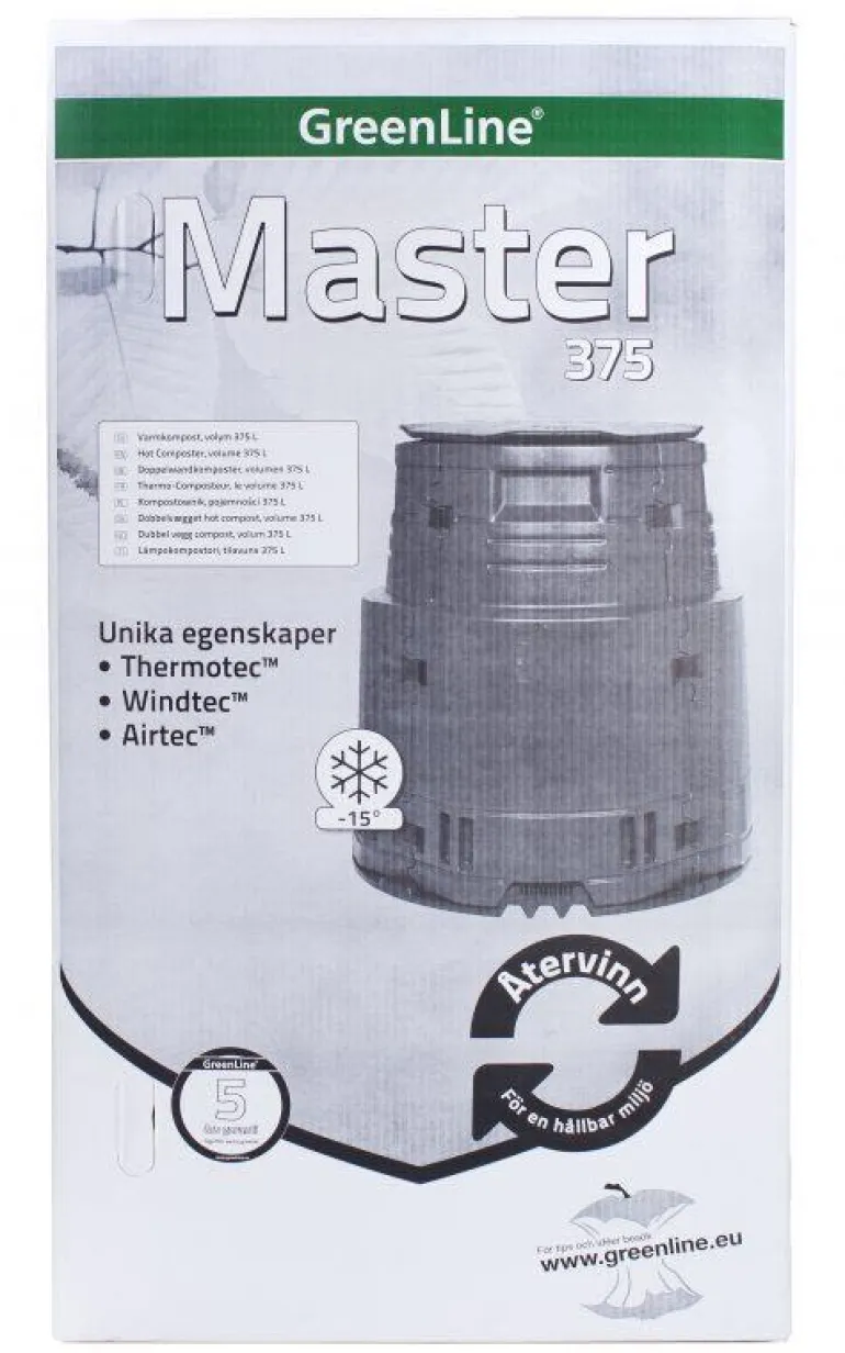 Kehittynyt Greenline Master-lämminkomposti kompostoi puutarha- ja kotitalousjätteesi nopeasti, jopa -15_C pakkasessa. 375 litran kompostisäiliö on vakaa ja tiivis.
