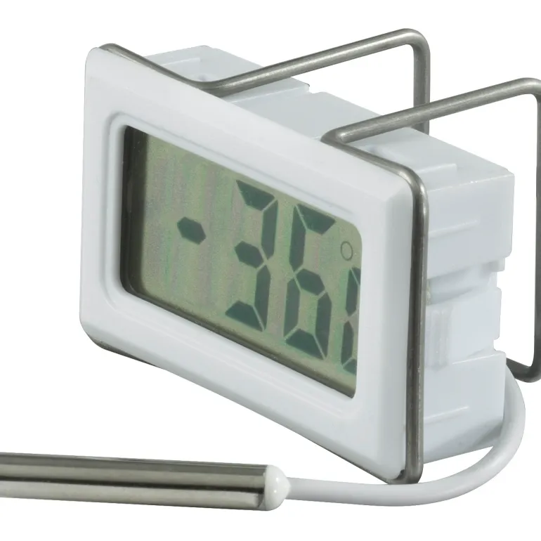Digitaalinen LCD-lämpömittari, malliin REMS Frigo 2 F-Zero. Varustettu kiinnityssangalla tarkkaa lämpötilanäyttöä varten suoraan jäätymiskohdissa.