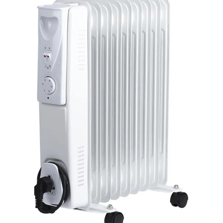 2000 W:n öljytäytteinen, erillinen lämpöpatteri. Patterissa on 9 laippaa ja kääntyvät pyörät. Toimitus sisältää 1,25 m:n kaapelin maadoitetulla pistokkeella.