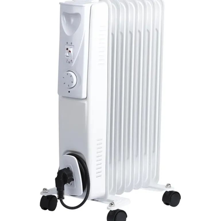 1500 W:n öljytäytteinen, erillinen lämpöpatteri. Patterissa on 7 laippaa ja kääntyvät pyörät. Toimitus sisältää 1,25 m:n kaapelin maadoitetulla pistokkeella.