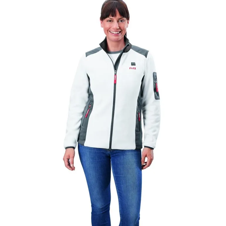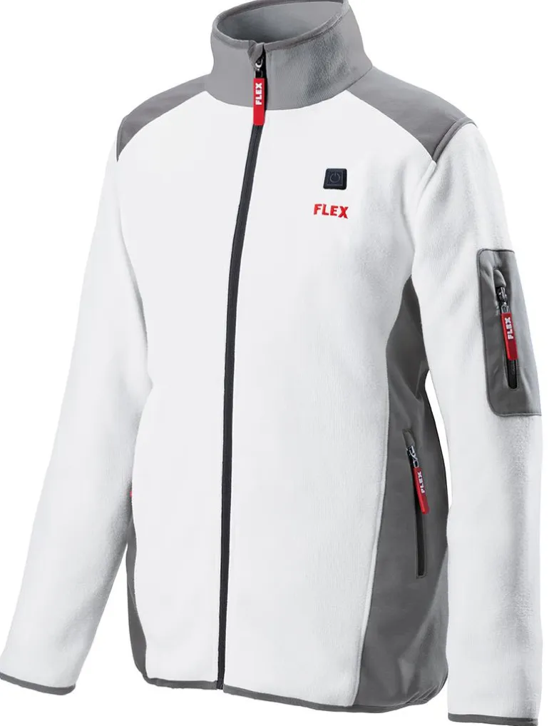 Kestävästä ja hengittävästä materiaalista valmistettu valkoinen akkukäyttöinen lämpötakki. Lämmin, korkealaatuinen fleecetakki, jossa on erilaisia taskuja, kolme lämmitysaluetta yksilöllistä lämpösäätöä varten ja “Quick heat”-toiminto.