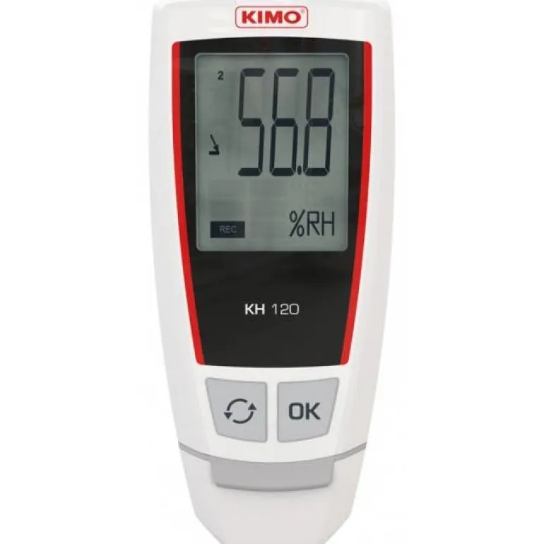 Kimo KH120 on kompakti kosteus- ja lämpötilaloggeri. Loggerissa on muistikapasiteetti 50 000 mittausarvolle, ja se käynnistyy helposti napin painalluksella, tietokoneen kautta tai ajastimella. Loggerin toiminta-aikaväli on vapaasti säädettävissä 1 min – 24 h. Mittaustiedot saadaan helposti PDF-tiedostona integroidun ohjelmiston ansiosta.