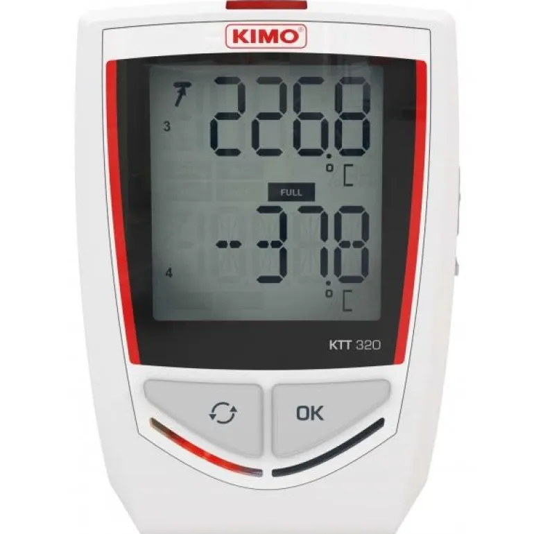 Kimo KTT320 on lämpötilaloggeri, jossa on neljä kanavaa lämpöelementtiantureille. Muisti 2 000 000 mittausarvolle.