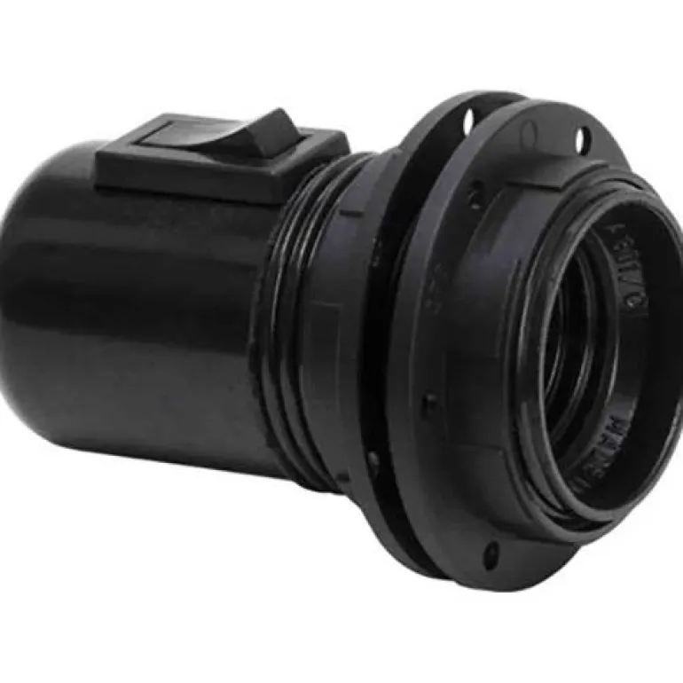 Kierteellinen lampunpidike vipukytkimellä, soveltuu esimerkiksi pöytä- ja kattovalaisimille.