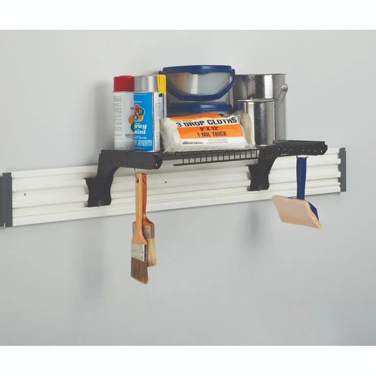 Lankahylly seinäkiskoon. Lankahylly voidaan kiinnittää yhdessä kahden STANLEY® Track Wall System -hyllykannattimen (myydään erikseen) kanssa STANLEY® Track Wall System -kiskoihin. Sopii täydellisesti pienten työkalujen, varusteiden ja tarvikkeiden säilytykseen halleissa tai työpajoissa. Voidaan käyttää tasapintaisena tai ylösalaisin käännettynä estämään esineiden putoaminen hyllystä. Hylly kiinnittyy seinäkiskon yläpuolelle kahden hyllykannattimen avulla, ja koukut voidaan asentaa alapuolelle. Yhden hyllyn pidikkeeksi tarvitaan kaksi kannatinta, ja kolmen hyllyn pidikkeeksi kolmen kannatinta. Yhdistämällä useita hyllyjä ja kannattimia saat pitkän säilytyspinnan. Kantavuus jopa 22,5 kg. Hyllyn koko: 9 x 29 x 16 cm.