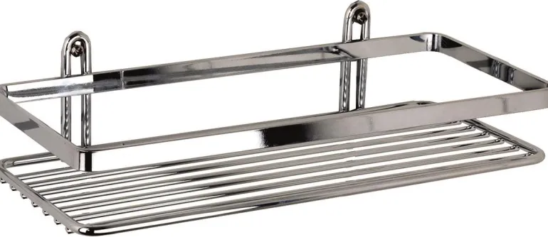 Suora kromattu hylly, jossa on yksi taso. Kiinnitetään seinään.