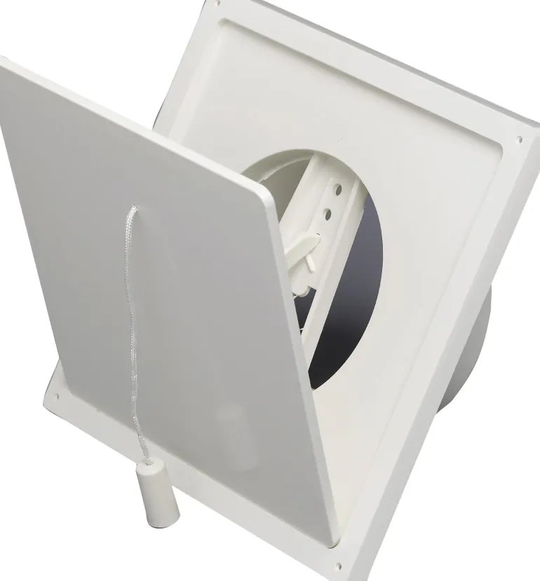 Läppäventtiili saatavana 100 mm tai 125 mm halkaisijalla. Venttiilissä on pyöreä holkki asennuksen helpottamiseksi.