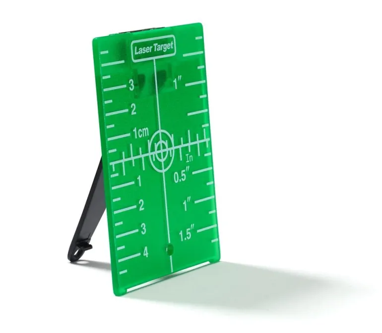 Laserkohdelevy, joka helpottaa laserlinjojen lukemista. Hultafors TPG on magneettinen ja siinä on myös reikä ripustusta varten, joten se on helppo kiinnittää esim. seinään.