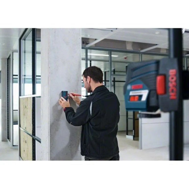 Bosch LR 6 on kätevä laservastaanotin jopa 50 metrin kantamalla Lasersäteen tason voi kohdistaa optisesti ja akustisesti erilaisissa valaistusolosuhteissa.
