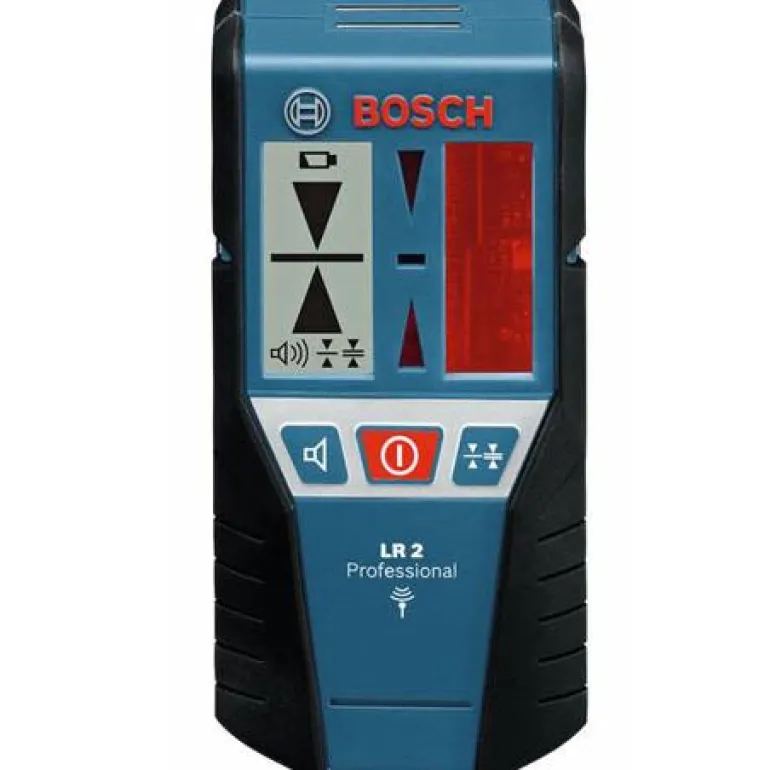 Bosch LR 2 Professional on kestävärakenteinen laservastaanotin, joka sopii erinomaisesti ulkotöihin. Laservastaanotin tunnistaa laserlinjan ja näyttää näytöllä, miten vastaanottajaa on säädettävä laserlinjan saavuttamiseksi.