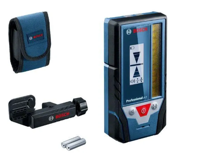 Bosch Professional LR 7 on laservastaanotin, joka tunnistaa vihreät ja punaiset laserlinjat. Suuri 8 cm:n vastaanottoalue laserlinjan nopeaan tunnistukseen. Lasersädetason kohdistus, optinen (näyttö ja ledit) ja akustinen, työskentelyyn erilaisissa valo-olosuhteissa.