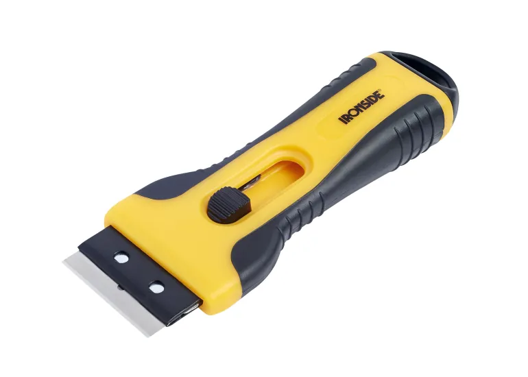 Raappa 2-komponenttikahvalla. Liukuva terä. 4 terää kahvan sisällä. Mitat 130x50mm. Terän leveys 39mm.