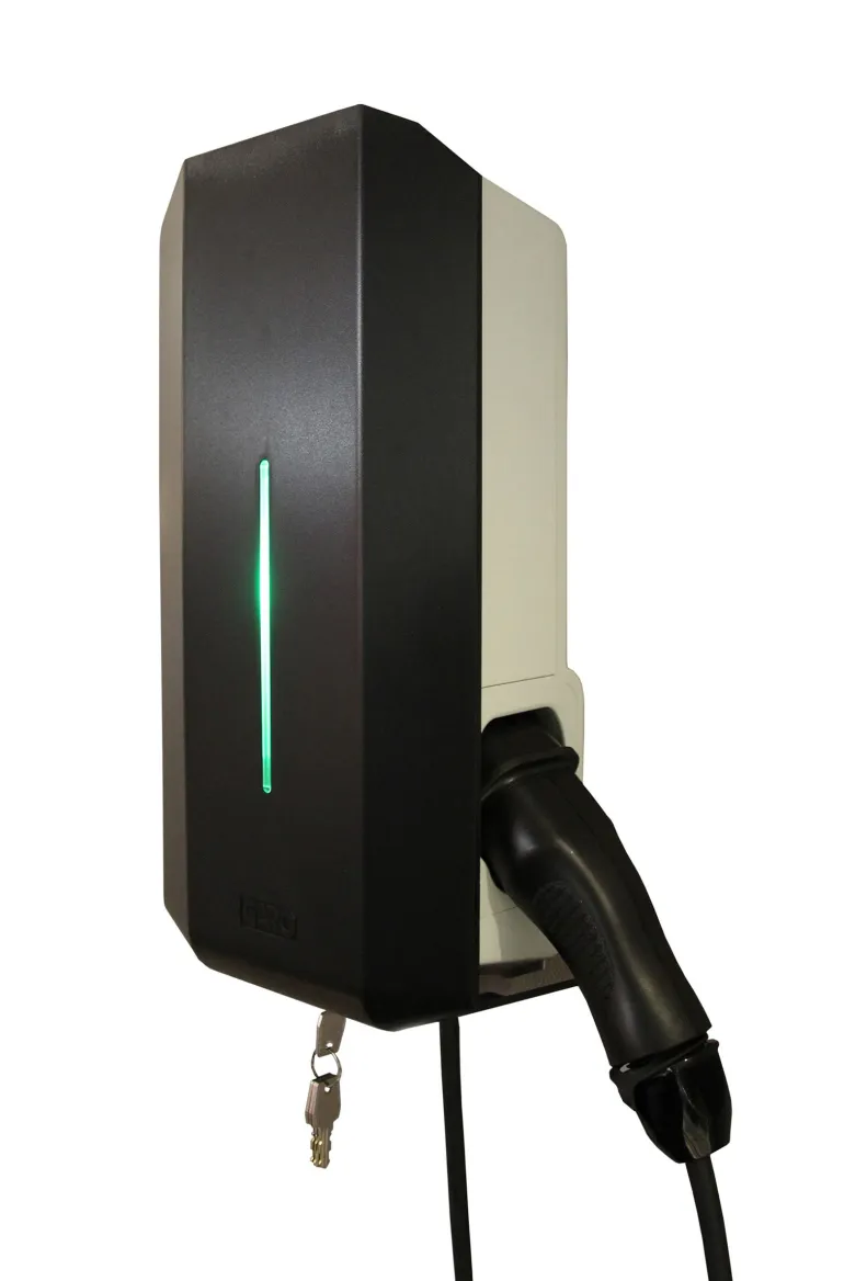 Garon 22 kW:n latauskotelo kiinteällä tyypin 2 kaapelilla ja tyypin A vikavirtasuojauksella. Varustettu DC-vikavalvonnalla. Suojattu Dc-vikavirroilta, valmius dynaamiseen kuormituksen tasaukseen. DC-vikavalvonta on turvatoiminto, jota vaaditaan sähköajoneuvojen lataamisen yhteydessä. Kuormituksen tasaus vähentää automaattisesti ajoneuvon latausvirtaa ja minimoi päävarokkeen laukeamisriskin. Täydennä sähkökeskuksen 1-vaiheisella/3-vaiheisella GARO Modbus -energiamittarilla kuormituksen tasauksen aktivointia varten. Latauskoteloa voidaan täydentää RFID-lukulaitteella ja/tai tiedonsiirtokortilla jne. monien älykkäiden lisätoimintojen aktivoimiseksi. JFB-A DC-valvonnalla, ilman sähkömittaria.