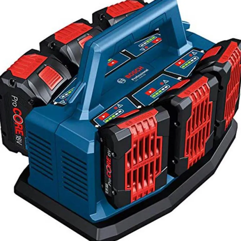 Bosch GAL 18V 6-80 on latauslaite, joka mahdollistaa jatkuvan latauksen työpäivän aikana tai yön yli kahdessa jaksossa. Ensimmäinen jakso lataa maks. kuusi akkua peräkkäin 80 %:n latausasteeseen peräkkäin ja toinen jakso tekee latausprosessin loppuun lataamalla akut 100 %:n latausasteeseen. 8 A:n latausvirran ansiosta ProCORE18V 8.0Ah -akut saa ladattua 80 %:n latausasteeseen vain 42 minuutissa. Lataustilan ilmaisimet 5 LED-valolla näyttävät tarkan latausasteen jokaisessa latausliitännässä. Jokaisen liitännän priorisoidun käynnistyksen painikkeella (Priority Start Button) voit tarvittaessa keskeyttää latausjakson ja aloittaa valitsemasi akun lataamisen välittömästi. GAL 18V6-80 on yhteensopiva 18V:n akkujen kanssa. Monipaikkaisen latauslaitteen kiinnittäminen L-BOXXiin estää tahattoman liikkeen kuljetuksen aikana. Latauslaitteen kahvassa on tapit, joihin voi kääriä sähköjohdon turvallista säilytystä ja kuljetusta varten.