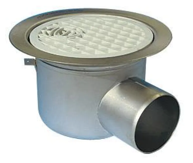 Ruostumattomasta teräksestä valmistettu lattiakaivo. Siivilällä, kiristysrenkaalla ja irrotettavalla vesilukkoelementillä. Kaivon koko on 110 mm.