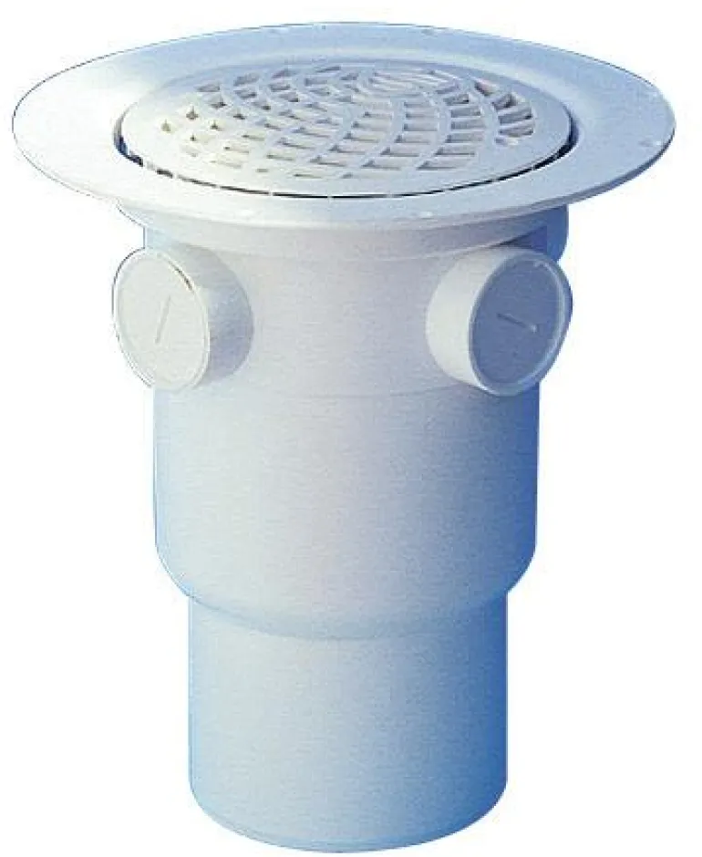 Lattiakaivo siivilällä, kiristysrenkaalla ja pikakiinnityksellä. Pohjaulostulo ja pistopää x sileä pää. Mallin halkaisija on 110 mm ja se on valmistettu PP-muovista.