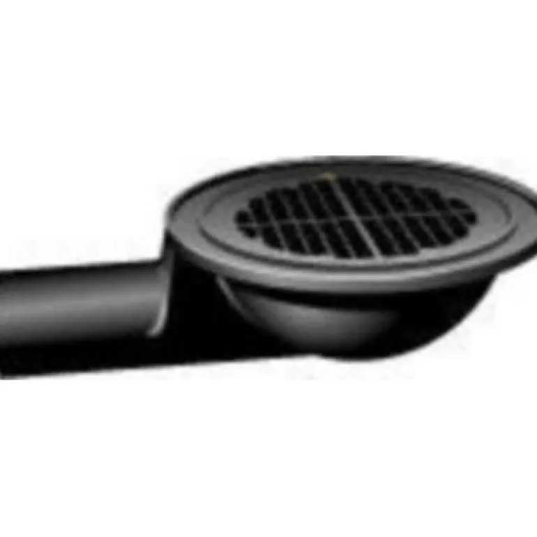 Asfaltoitu lattiakaivo, poistoaukko sivulla. Valmistettu valuraudasta, halkaisija 150 mm. Sivupoistoaukon halkaisija on 75 mm.