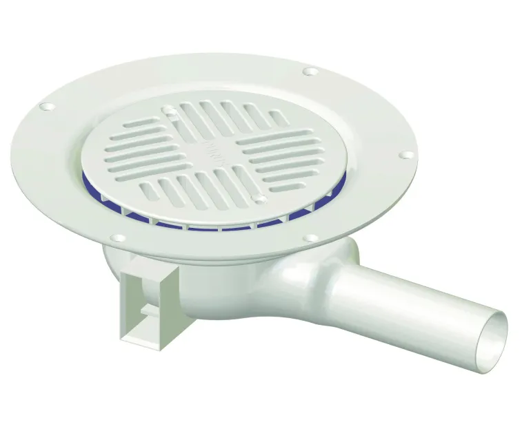 Lattiakaivo ja siivilä, kiinnitysrengas ja suojakansi. Matala rakennekorkeus 70 mm ja ritilän halkaisija 130 mm. Valmistettu valkoisesta PP-muovista.