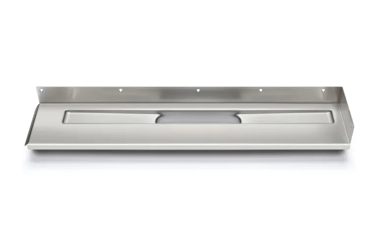 Unidrain Linje 1003 on ruostumattomasta teräksestä valmistettu lattiakaivokaluste, jossa on peitattu pinta.