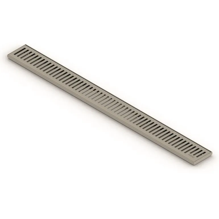 Korkealaatuinen lattiakaivon kansi Rib ruostumatonta terästä Purukselta. Lattiakaivon kansi sopii Purus Line 900 ‑mallisarjaan.