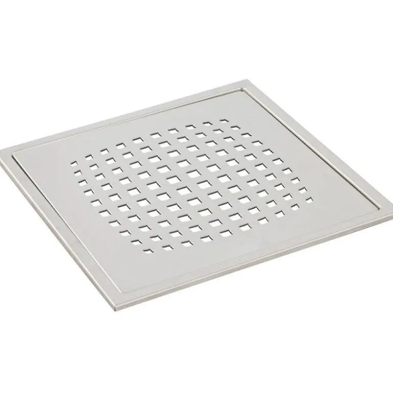 200×200 mm harjattu ruostumattomasta teräksestä valmistettu lattiakaivon siivilä, tyyppi AISI 316. Materiaali on haponkestävä, joten siivilä soveltuu käytettäväksi esimerkiksi klorideja ja suolaa käyttäville vesille.