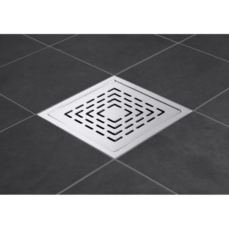 200×200 mm harjatusta ruostumattomasta teräksestä valmistettu lattiakaivon siivilä, tyyppi AISI 437