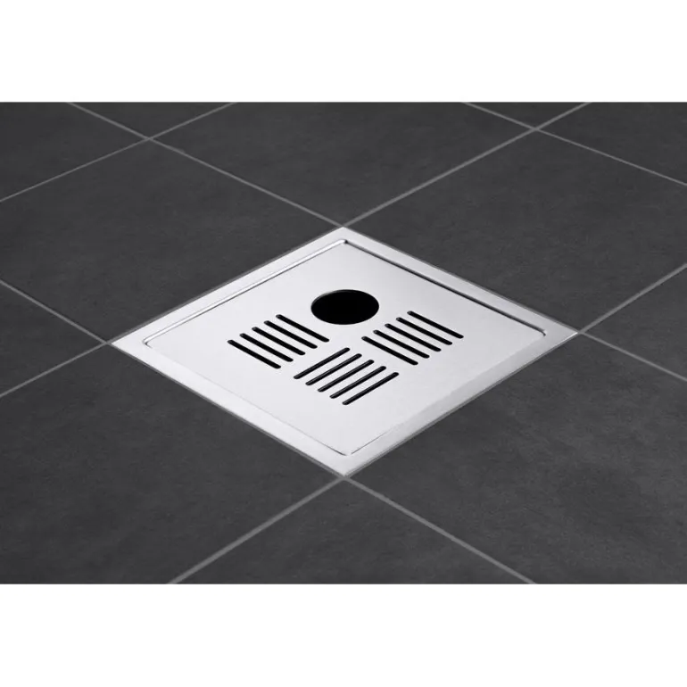 200×200 mm harjatusta ruostumattomasta teräksestä valmistettu lattiakaivon siivilä, tyyppi AISI 432