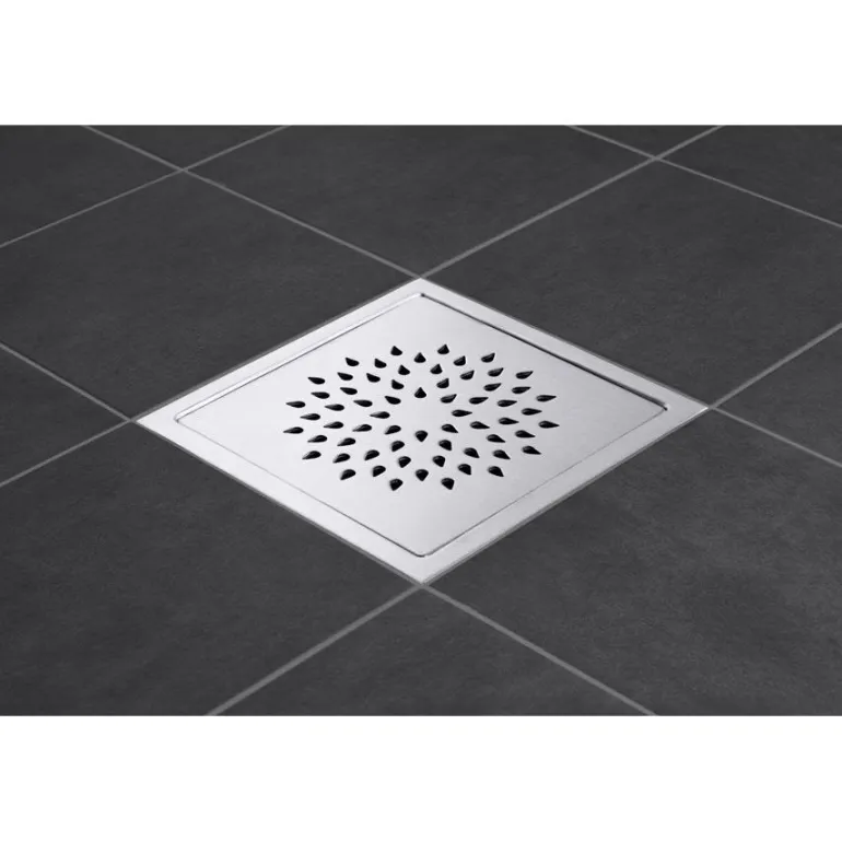 200×200 mm harjatusta ruostumattomasta teräksestä valmistettu lattiakaivon siivilä, tyyppi AISI 433