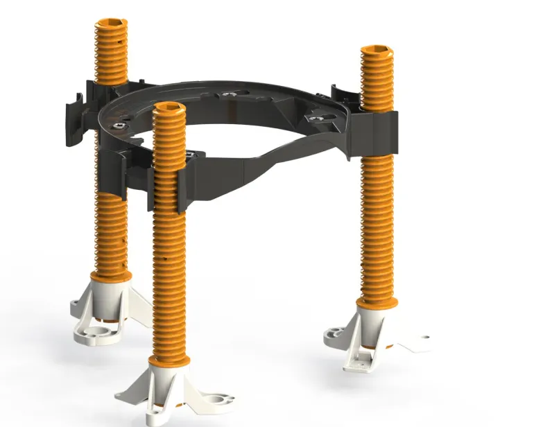 Lattiakaivoteline 220 mm laipalla varustetuille lattiakaivoille. Varustettu kolmella jalalla.