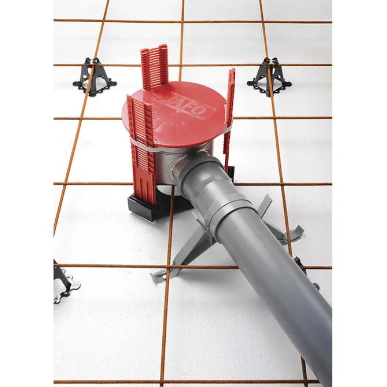 Lattiakaivoteline, jota käytetään lattiakaivojen asentamiseen ja keskittämiseen betonirakenteisiin. Teline täyttää alan määräysten mukaiset vaatimukset turvallisesta vesiasennuksesta lattiakaivon tarkkaan kiinnitykseen oikealla korkeudella ja tasolla, kun se on upotettu betonirakenteisiin. Teline koostuu pohjalevystä, 3 säätöjalasta ja kiinnityshihnasta.