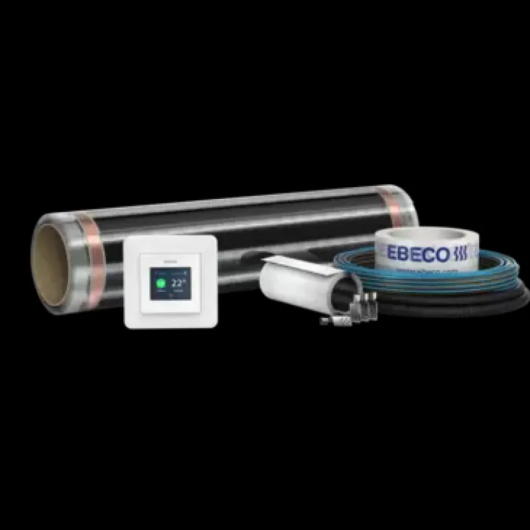 Ebeco Foil Kit 500 on lattialämmityssarja jopa 12 m²:lle, sopii puulle ja laminaatille. Foil Kit 500 -sarjan ansiosta lattialämmitys on helppo saada sekä puulattioiden, laminaattien että muovimattojen alle. Lattialämmityskalvo on kestävä, luotettava ja erittäin ohut – vain 0,3 mm. Se ei sisällä halogeenia eikä PVC:tä.