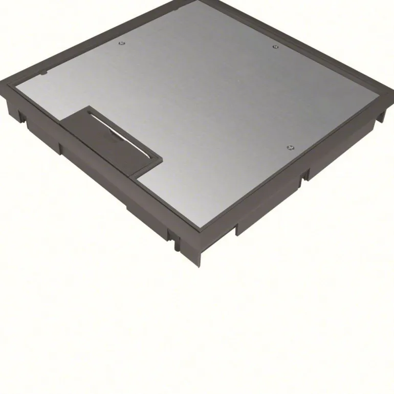 Hager KDQ08059005 on lattiarasiakansi Q08 294×294 mm 5 mm lattiapinnoitteelle polyamidi-muovista, syvänmusta. Lattiarasiakansi ultraohueeseen lattia-asennukseen DIN EN 50085-1 ja DIN EN 50058-2-2 mukaan. Minimi asennussyvyys 53 mm ja suojamaadoitettujen pistorasioiden määrä (CEE 7/3, tyyppi F): 8. Sisältää asennuspakkauksen kiinnitysväille 5 – 15 mm. Lattiapinnoitteen lisäksi, yhteensopiva asennettavaksi valurasia sekä lattian päälle ja tasoon uppoon asennettavien lattiakanavien kanssa, asennuspinnan päälle tulevalla peitekehyksellä.