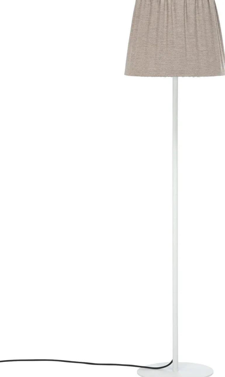 Agnar-lattiavalaisin ulkokäyttöön. Lampunvarjostin on valmistettu 100% akryylidralonista valmistetusta kankaasta, joka kestää hyvin sääolosuhteita. Meleerattu kangas (OEKO-TEX® Standard 100 -sertifioitu) korkealla valonkestävyydellä (5–7) ja vettä ja likaa hylkivällä teflonkäsittelyllä. Varjostimen teline on sinkitty ruostumisen ehkäisemiseksi. Valaisimessa E27-kanta, ja suositeltu valonlähde on 1806404 (PR Home). Valonlähteen ja lampun kannan päällä on valkoinen muovikansi ja tiiviste, jotka suojaavat kosteudelta. Varjostin kiinnitetään jalkaan erikoiskiinnikkeellä. Jalka ja varjostin myydään vain settinä.