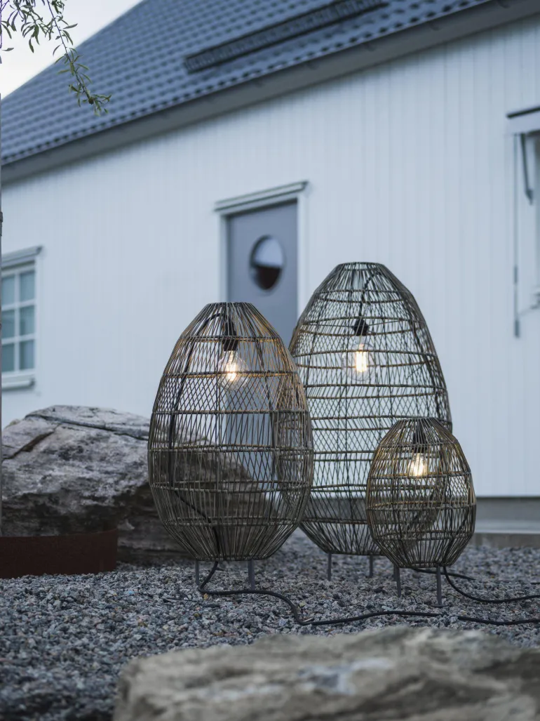 Hanoi-lattiavalaisin ulkokäyttöön, joka on valmistettu säänkestävästä polyrottingista. Saatavana kolmessa eri koossa. Polyrottinki on kestävä materiaali, joka soveltuu erinomaisesti ulkotiloihin, sillä se sietää hyvin vaihtelevia sääolosuhteita.