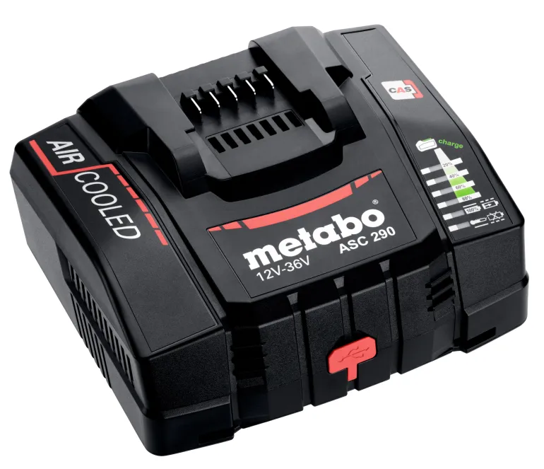 Metabon pikalaturi, joka mahdollistaa ennätysnopean latauksen: pikalaturi lyhyimmällä latausajalla kaikille Metabon liukuakuille kaikissa jänniteluokissa (12–36 V). Akut latautuvat jopa 8 kertaa nopeammin verrattuna yksinkertaisempaan laturiin. Selkeä näyttö näyttää latausprosessin etenemisen. Laturi on ilmajäähdytteinen. Nopea ja tehokas lataus myös ulkoisille laitteille USB-C-kaapelin (20 W) kautta. Noin 85 % pienempi valmiustilan kulutus verrattuna useimpiin muihin latureihin. Universaali käyttö: virtajohto pistokkeella, vaihdettavissa muihin kaapeleihin muilla pistoketyypeillä. 3 vuoden takuu kaikille Metabon akuille ja latureille, riippumatta lataussyklien määrästä. Monta merkkiä, yksi akkujärjestelmä: laturi kaikkien CAS-merkkisten akkujen lataamiseen.