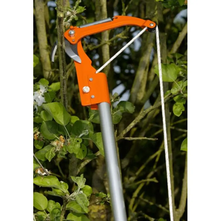 Kevyet latvussakset, kaksivipuinen välitys. Latvusten turvalliseen karsintaan ilman tikkaita teleskooppivarren kanssa käytettäessä. Kiinnitetään 25 mm:n varsiin puristimella. Sisältää köyden 5 m.
