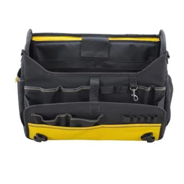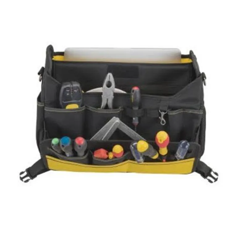 Laukku kannettavalle tietokoneelle ja työkaluille. Voidaan kiinnittää pyörälliseen FATMAX-työkalululaukkuun (FMST1-80148). Sopii enintään 15,6″ tietokoneelle. Nopeasti suljettava ”quick release” -solki. Ergonominen kantokahva. Kestävä 600 denierin kangas. Paljon taskuja ja työkalulenkkejä. Pehmustettu lokero tietokoneelle tai A4-asiakirjoille. Irrotettava pehmustettu olkahihna. Avataan edestä, joten sisältö on helposti saatavilla.