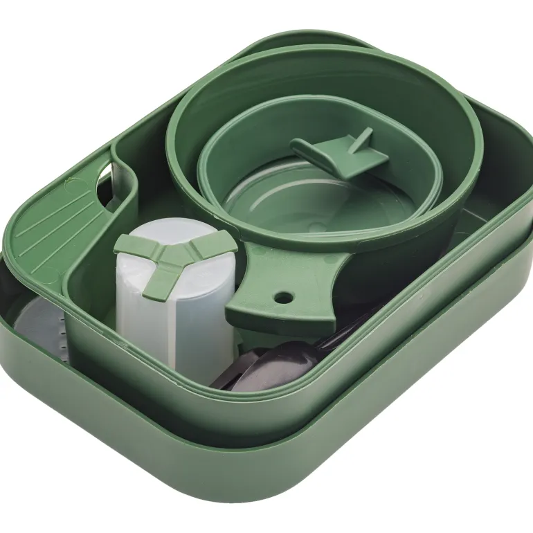 Seitsemän osainen lautaslaatikko, joka sisältää lautasen, ruokailuvälineet, maustepurkin, kuksan ja leikkuulaudan. Kaikki sisältö mahtuu isoon laatikkoon, mikä tekee lautaslaatikosta helpon kuljettaa. Retkeilyyn, campingille, vaelluksille ja patikointiin. Valmistettu Ruotsissa ja BPA-vapaa.