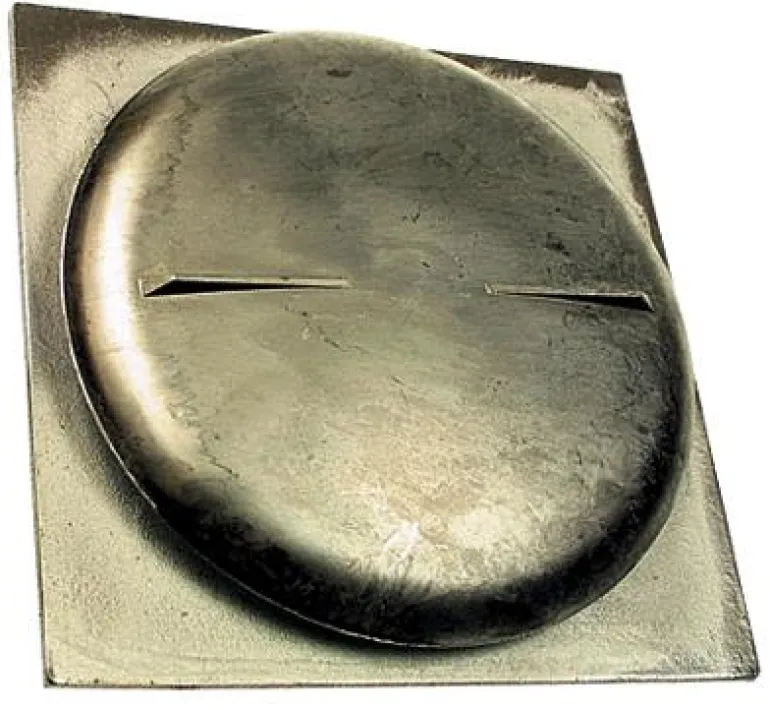 Alumiininen lautasventtiili, jossa on nelikulmainen kehys ja pyöreä kansi.
