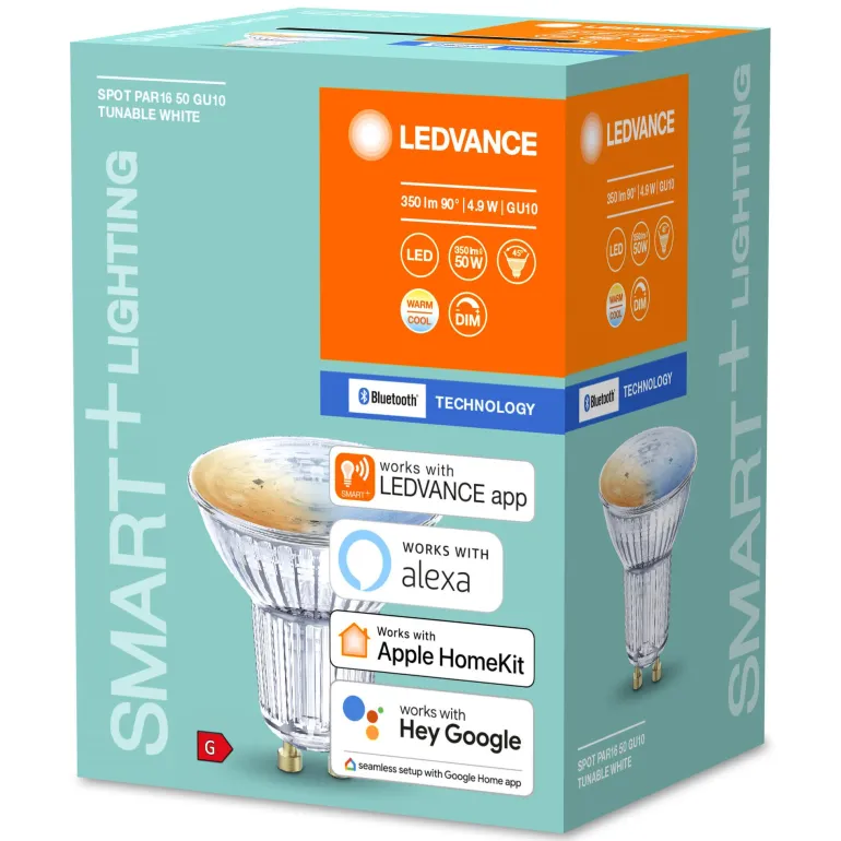 Himmennettävä LED-heijastinlamppu, PAR16, nastapistokkeella. Valovärin säätö lämpimän valkoisesta päivänvaloon Tunable White -toiminnon ansiosta. Langaton älykäs valaistustoiminto, jota ohjataan Bluetooth-verkkoprotokollalla. Helppo asentaa ja käyttää. Ei sisällä elohopeaa. Soveltuu yleisvalaistukseen, kodin sisätiloihin, hotelleihin, baareihin ja kauppoihin. Soveltuu ulkokäyttöön vain yhteensopivien valaisinten kanssa.