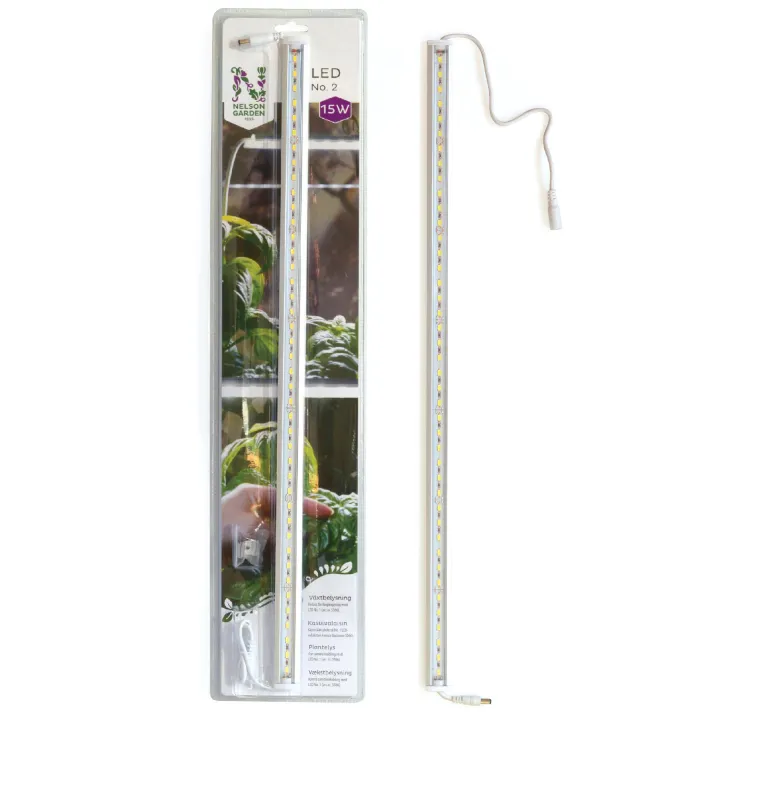 Energiaa säästävä LED-lista ilman muuntajaa. Vain nro 1 -LED-listaan kytkettäväksi (Nelson Garden -tuotenro 5566). Sopii esikasvatukseen ja lisävaloksi sisäviljelmille.